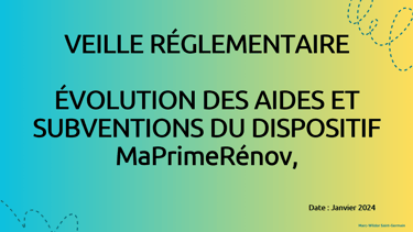 Veille réglementaire sur les thèmes de la rénovation énergétique (copropriétés, bailleurs) (MaPrimeRénov’, Fiche CEE). Compréhension des évolutions du dispositif.