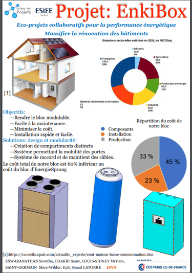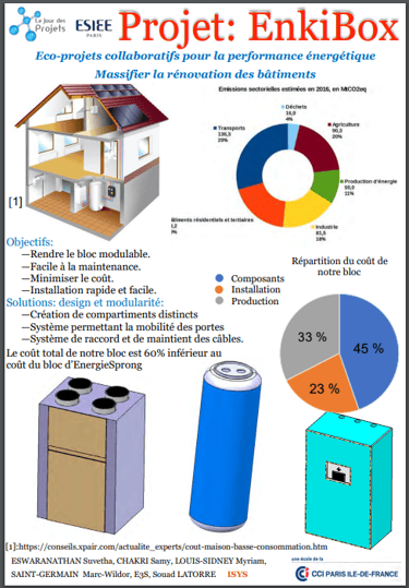 Le projet en Ingénierie des Systèmes portait sur les éco-projets collaboratifs pour la performance énergétique, avec pour objectif la massification de la rénovation des bâtiments. Nous avons travaillé sur le dimensionnement et la modélisation d'un système de VMC double-flux. Pendant ces dix semaines, nous avons suivi une démarche de projet avec un planning précis, des points réguliers, le suivi de l'avancement des tâches, la définition du cahier des charges, la modélisation, etc.