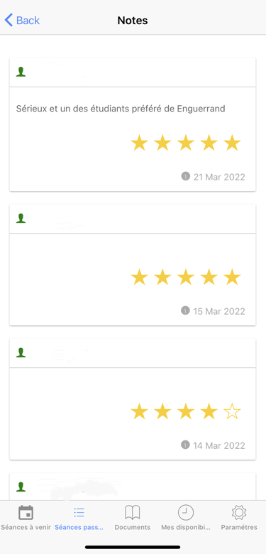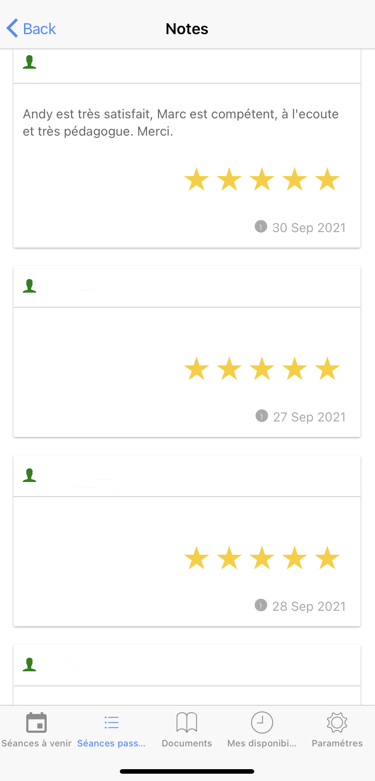 SMS bilan à la fin des séances pour garder un contact privilégié avec les parents et qu’ils soit au plus près de l’avancement et du travail planifié pour la suite
