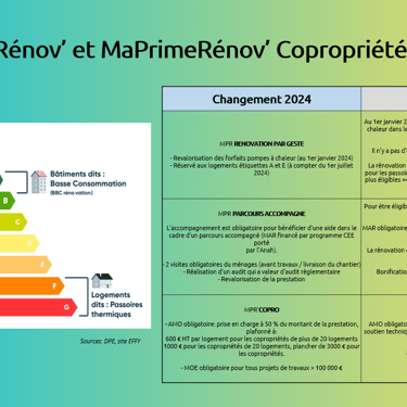 Veille réglementaire sur les thèmes de la rénovation énergétique (copropriétés, bailleurs) (MaPrimeRénov’, Fiches CEE). Compréhension des évolutions du dispositif.